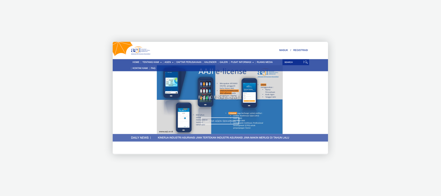 E-license application is an AAJI (Indonesia Life Insurance Association) license card application in digital form which can only be accessed and used for limited agents as an official identity card in marketing insurance products.