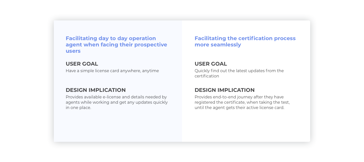 Based on the user needs and the gaps in existing flows, we summarized the higher level goals we hope to achieve with the build the e-license.