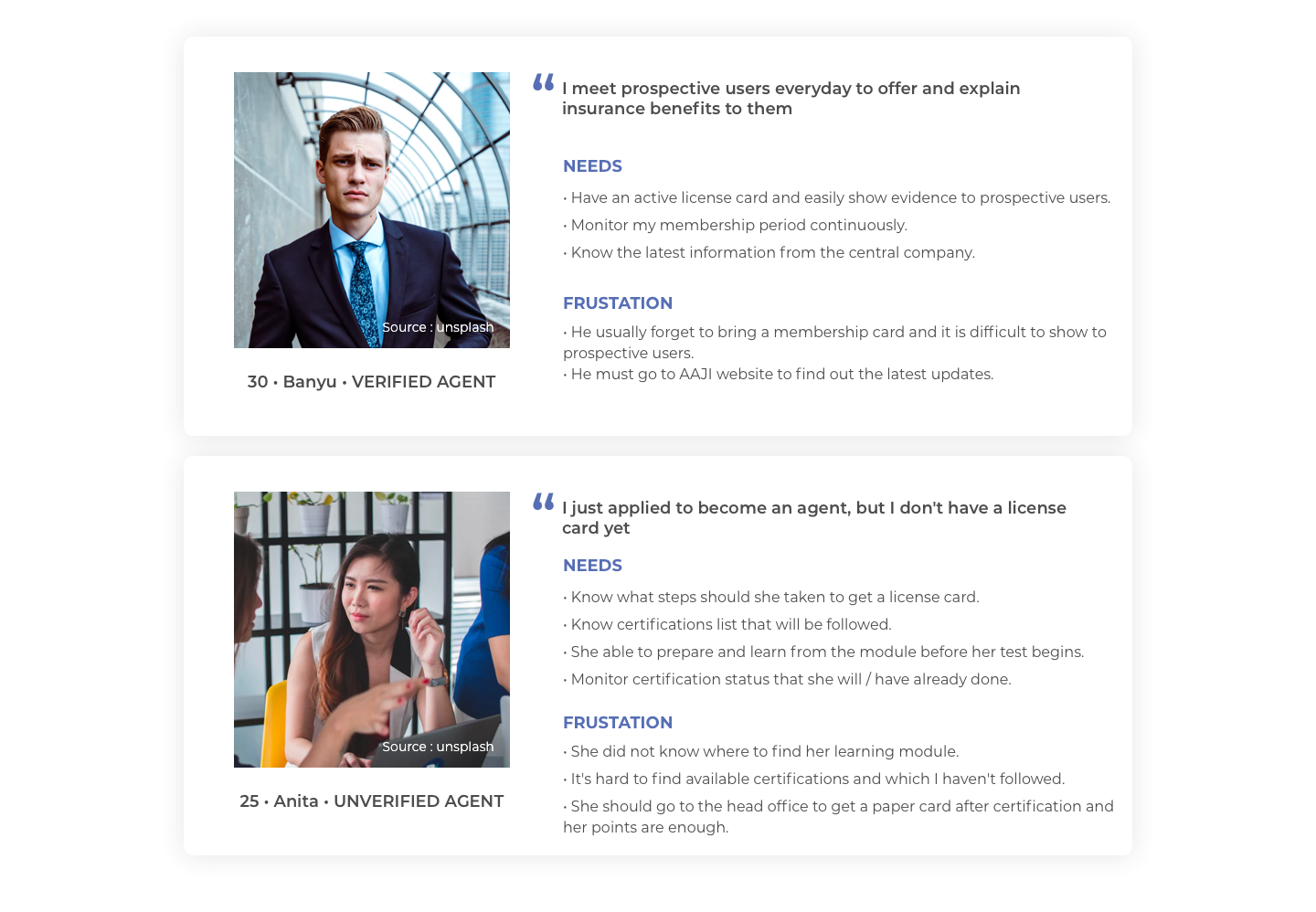 We first looked into the official AAJI website, trying to find inspirations and gaps among user needs. On this website, we found detailed information about agent membership, types, certification lists and other agent’s regulation. From here we can imagine grouping of users and their needs.