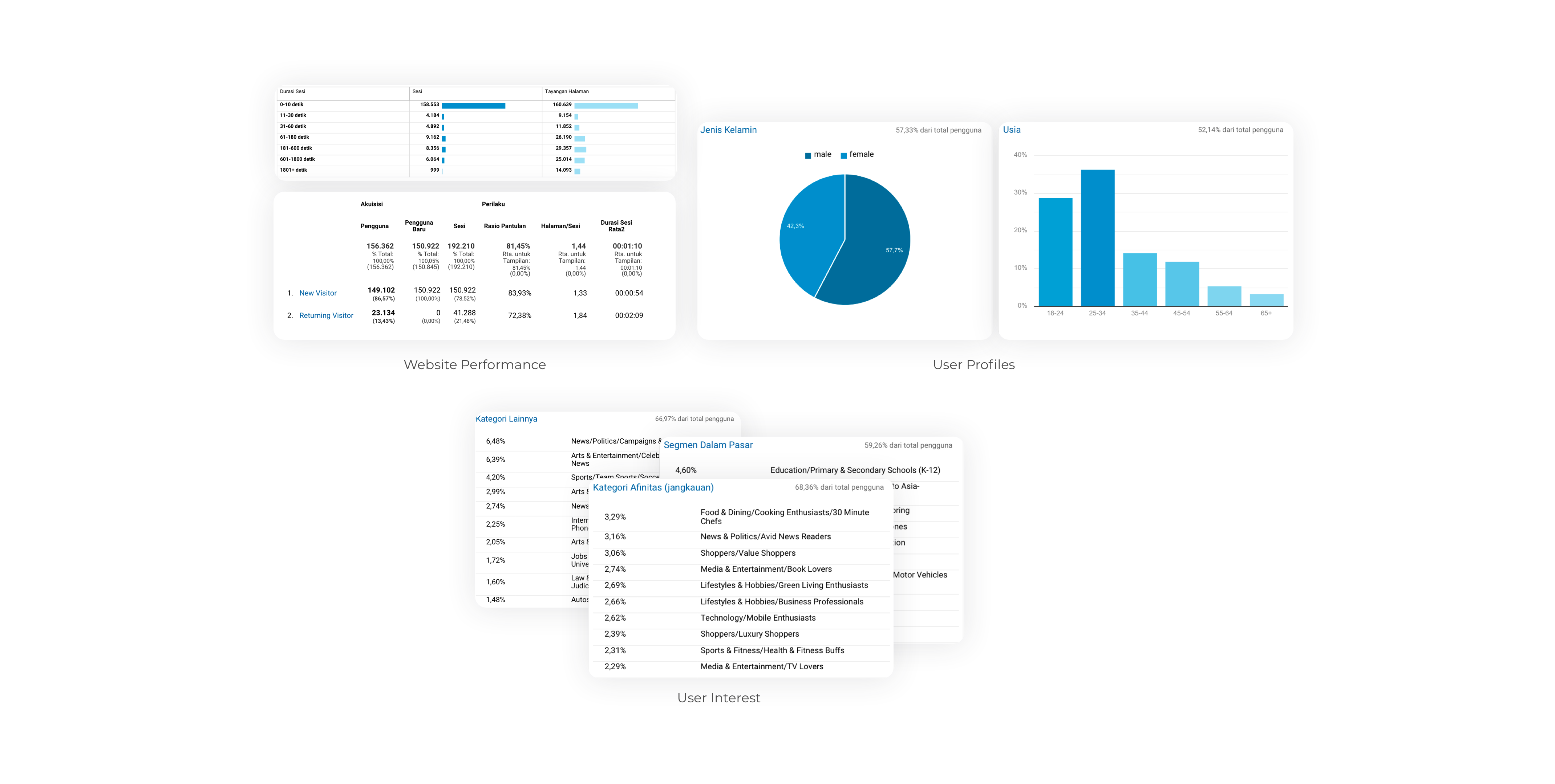 Based on Google Analytics Data (GA) we found datas including website performance, who is the user, and user interest in finding information Jawa Barat Website Performance. User Demographics, User interest.